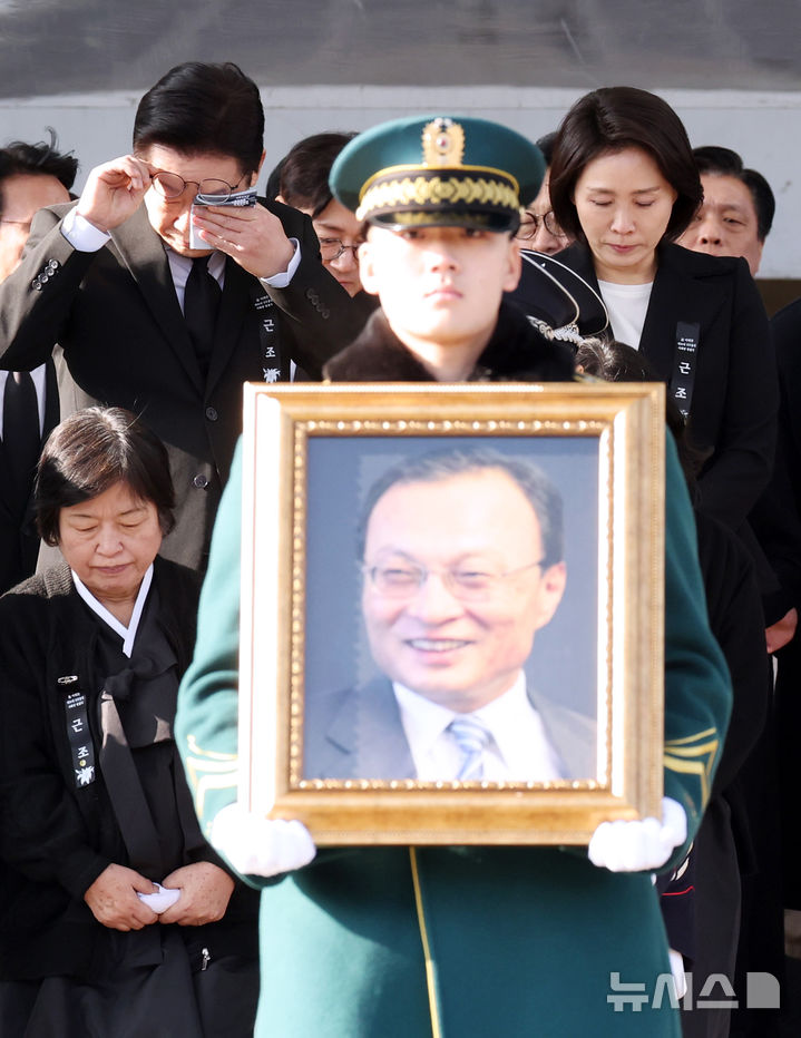 [서울=뉴시스] 최동준 기자 = 이재명 대통령과 김혜경 여사가 31일 서울 여의도 국회 의원회관에서 열린 고 이해찬 전 국무총리(민주평화통일자문회의 수석부의장) 영결식에서 이 전 총리를 배웅하고 있다. 2026.01.31. [email protected]