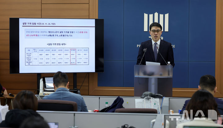 [서울=뉴시스] 홍효식 기자 = 나희석 서울중앙지방검찰청 공정거래조사부 부장검사가 2일 서울 서초구 서울고등검찰청 브리핑실에서 서민경제 교란 사범 집중 수사결과 발표를 하고 있다. 2026.02.02. [email protected]