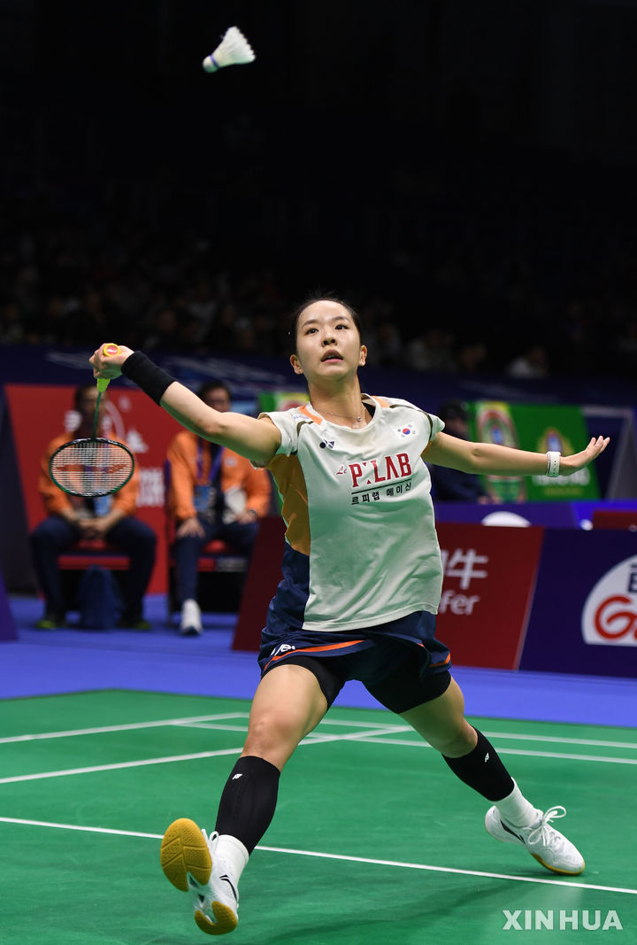 [칭다오=신화/뉴시스] 박가은이 3일(현지 시간) 중국 칭다오의 콘손 체육관에서 열린 2026 배드민턴 아시아 남녀 단체선수권대회 조별리그 Z조 1차전 2단식에서 인시라 칸(싱가포르)과 경기하고 있다. 박가은이 2-0(22-20 21-10)으로 이기고, 한국은 5-0으로 싱가포르를 물리쳤다. 2026.02.04.