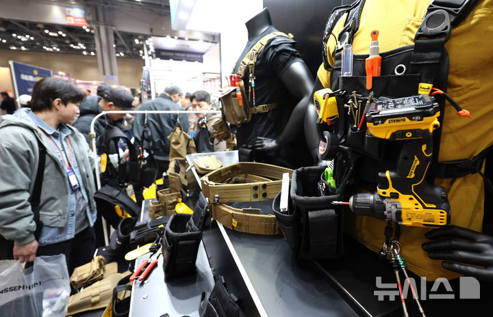 [고양=뉴시스] 전진환 기자 = 4일 경기도 고양시 킨텍스에서 열린 2026 코리아빌드위크를 찾은 관람객들이 산업용 워크웨어를 살펴보고 있다. 2026.01.04. [email protected]