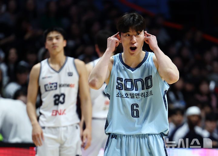 [고양=뉴시스] 김명년 기자 = 4일 경기 고양시 고양 소노아레나에서 열린 2025-2026 KBL 프로농구 고양 소노와 부산 KCC 이지스의 경기, 소노 이정현이 동료들에게 지시하고 있다. 2026.02.04. [email protected]