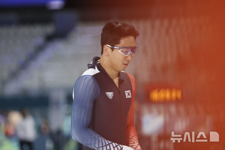 [밀라노=뉴시스] 김근수 기자 = 2026 밀라노-코르티나 담페초 동계올림픽에 출전하는 스피드스케이팅 김준호가 4일(현지 시간) 이탈리아 밀라노 스피드스케이팅장에서 스피드 테스트 훈련을 마치고 깊은 숨을 내쉬고 있다. 2026.02.05. [email protected]