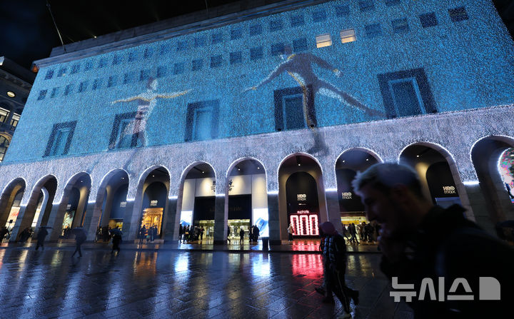 [밀라노=뉴시스] 박주성 기자 = 2026 밀라노-코르티나 담페초 동계올림픽 개막을 이틀 앞둔 4일(현지 시간) 이탈리아 밀라노 두오모 고딕 대성당 주변 건물에 동계올림픽을 나타내는 영상들이 투영되고 있다. 2026.02.04. [email protected]