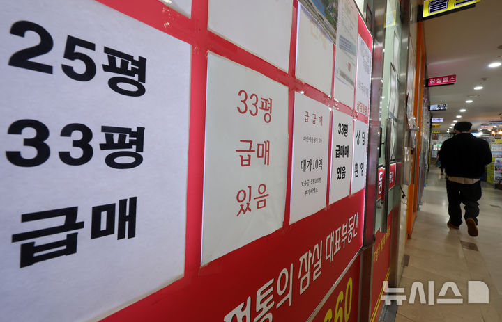 [서울=뉴시스] 배훈식 기자 = 이재명 대통령의 연이은 고강도 부동산 메시지에 서울 강남3구 등에서 급매물이 늘어난 5일 오후 서울 송파구의 한 공인중개사 사무실에 아파트 급매물을 알리는 안내문이 붙어 있다.