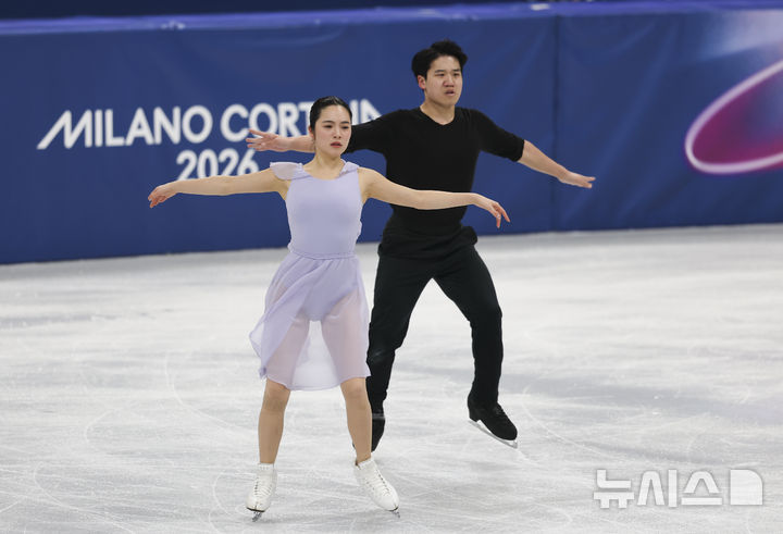 [밀라노=뉴시스] 김근수 기자 = 피겨스케이팅 아이스댄스 권예, 임해나가 5일(현지 시간) 이탈리아 밀라노 아이스 피겨스케이팅 아레나 연습경기장에서 훈련을 하고 있다. 2026.02.05. [email protected]