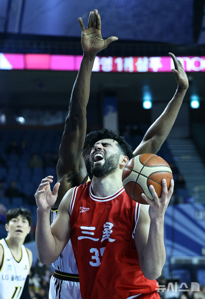 [서울=뉴시스] 최진석 기자 = 5일 서울 송파구 잠실실내체육관에서 열린 2025-2026 KBL 프로농구 창원 LG 세이커스와 서울 삼성 썬더스의 경기, 삼성 케렘 칸터가 고통을 호소하고 있다. 2026.02.05. [email protected]