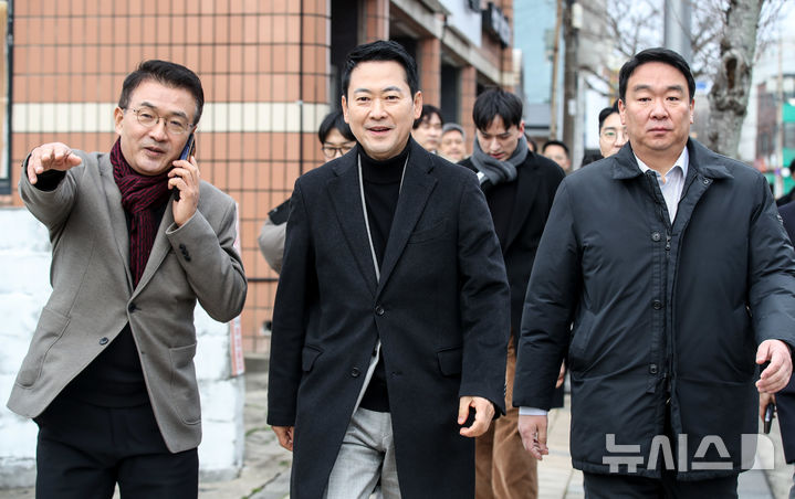 [서귀포=뉴시스] 우장호 기자 = 장동혁 국민의힘 대표가 6일 오전 제주 서귀포시 표선면의 한 거리에서 통일교의 정치권 금품로비 의혹과 관련한 특검법 입법을 요구하는 이른바 '쌍특검 촉구 피켓시위' 지지자를 찾아가고 있다. 2026.02.06. [email protected]