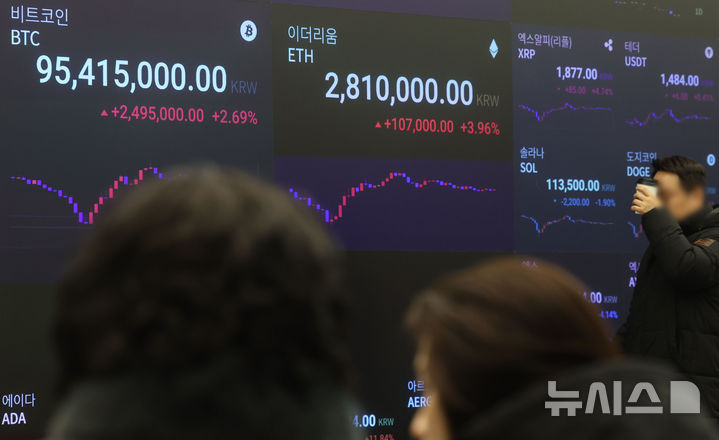 [서울=뉴시스] 권창회 기자 = 비트코인이 급락하며 1억원 대가 깨진 6일 서울 강남구 업비트 고객센터 전광판에 비트코인 등 암호화폐 시세가 나오고 있다. 2026.02.06. [email protected]