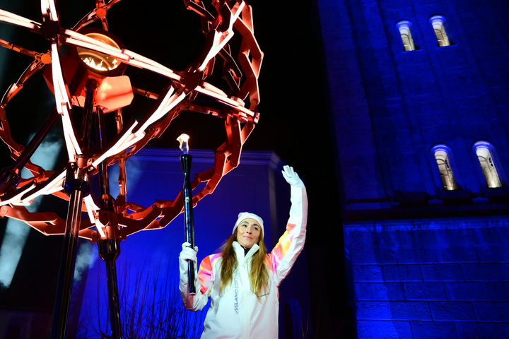[코르티나담페초=AP/뉴시스] 6일(현지 시간) 이탈리아 코르티나담페초 디보나 광장에서 열린 2026 밀라노·코르티나담페초 동계올림픽 개막식에서 최종 성화 주자인 이탈리아 스키 선수 소피아 고지아가 올림픽 성화대에 불을 붙이기 전 포즈를 취하고 있다. 고지아는 2018 평창올림픽 금메달, 2022 베이징올림픽 은메달리스트다. 2026.02.07.