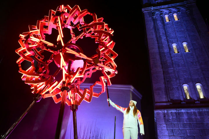 [코르티나담페초=AP/뉴시스] 6일(현지 시간) 이탈리아 코르티나담페초 디보나 광장에서 열린 2026 밀라노·코르티나담페초 동계올림픽 개막식에서 최종 성화 주자인 이탈리아 스키 선수 소피아 고지아가 올림픽 성화대에 불을 붙이고 있다. 고지아는 2018 평창올림픽 금메달, 2022 베이징올림픽 은메달리스트다. 2026.02.07.
