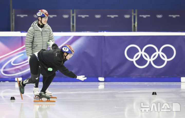 [밀라노=뉴시스] 김근수 기자 = 2026 밀라노·코르티나 담페초 동계올림픽 쇼트트랙 임종언과 심석희가 7일(현지 시간) 이탈리아 밀라노 아이스 스케이팅 아레나 연습 경기장에서 훈련을 하고 있다. 2026.02.07. [email protected]