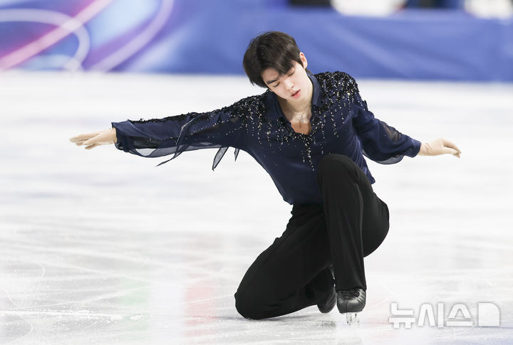 [밀라노=뉴시스] 김근수 기자 = 피겨스케이팅 팀 이벤트 남자 싱글 차준환이  7일(현지 시간) 이탈리아 밀라노 아이스 스케이팅 아레나 경기장에서 열린 2026 밀라노·코르티나 담페초 동계올림픽 팀 이벤트 단체전 남자 싱글 쇼트 프로그램에서 연기를 펼치고 있다. 2026.02.07. [email protected]