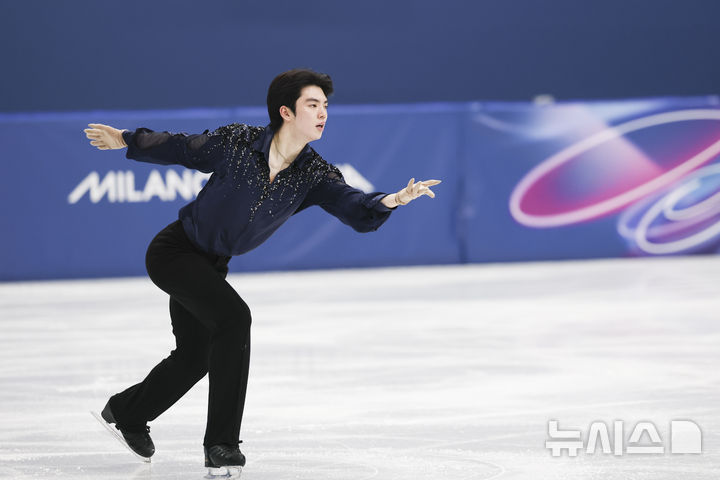 [밀라노=뉴시스] 김근수 기자 = 피겨스케이팅 팀 이벤트 남자 싱글 차준환이 7일(현지 시간) 이탈리아 밀라노 아이스 스케이팅 아레나 경기장에서 열린 2026 밀라노·코르티나 담페초 동계올림픽 팀 이벤트 단체전 남자 싱글 쇼트 프로그램에서 연기를 펼치고 있다. 2026.02.07. [email protected]