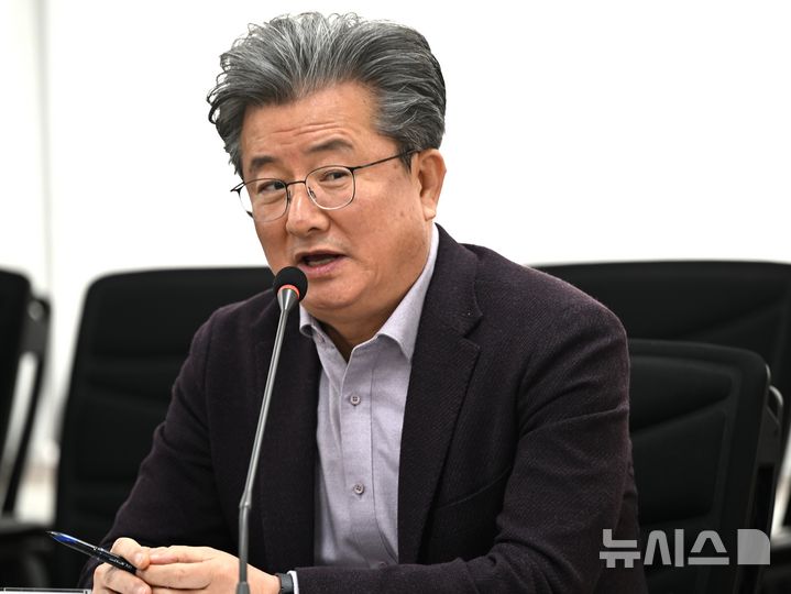 [광주=뉴시스] 이현행 기자 = 정용래 대전 유성구청장이 8일 오전 광주 동구청에서 자치분권 강화를 위한 행정통합 간담회에서 발언하고 있다. 간담회에는 신정훈 국회의원과 임택 동구청장, 김이강 서구청장, 김병내 남구청장, 문인 북구청장, 박병규 광산구청장, 김제선 대전 중구청장, 정용래 대전 유성구청장 등이 참석했다. 2026.02.08. [email protected]