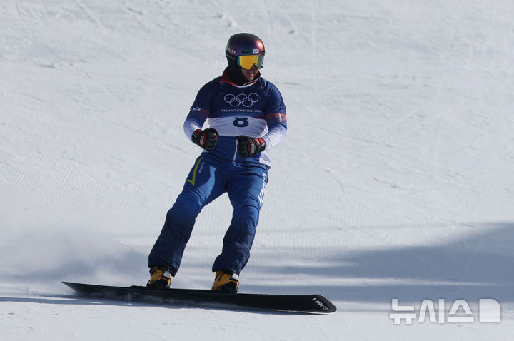 [리비뇨=뉴시스] 김근수 기자 = 스노보드 김상겸이 8일(현지 시간) 이탈리아 리비뇨 스노우파크에서 열린 2026 밀라노·코르티나 담페초 동계올림픽 스노보드 남자 평행대회전 16강에서 결승선을 통과한 뒤 기뻐하고 있다. 2026.02.08. [email protected]