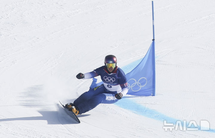 [리비뇨=뉴시스] 김근수 기자 = 스노보드 은메달리스트 김상겸이 8일(현지 시간) 이탈리아 리비뇨 스노우파크에서 열린 2026 밀라노코르티나 담페초 동계올림픽 스노보드 남자 평행대회전 결승전을 치르고 있다. 2026.02.09. [email protected]