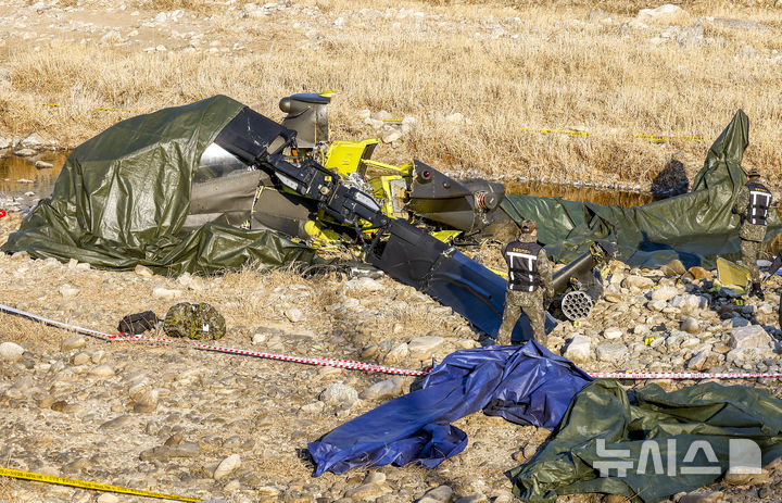 [가평=뉴시스] 정병혁 기자 = 9일 경기 가평군 조종면 신하교 인근에 AH-1S 코브라 헬기가 추락해 현장에서 군 관계자들이 사고 수습을 하고 있다. 2026.02.09. [email protected]