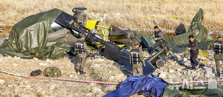[가평=뉴시스] 정병혁 기자 = 9일 경기 가평군 조종면 신하교 인근에 AH-1S 코브라 헬기가 추락해 현장에서 군 관계자들이 사고 수습을 하고 있다. 2026.02.09. [email protected]