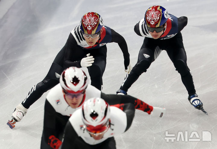 [밀라노=뉴시스] 박주성 기자 = 쇼트트랙 대한민국 대표팀 임종언(왼쪽), 이정민이 9일(현지 시간) 이탈리아 밀라노 아이스스케이팅 아레나에서 내일 있을 경기에 대비해 훈련을 하고 있다. 2026.02.09. [email protected]
