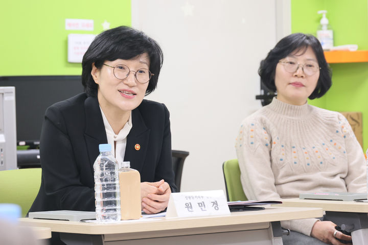 [서울=뉴시스] 조성우 기자 = 원민경 성평등가족부 장관이 9일 서울 금처구 서울이주여성디딤터를 방문해 운영 현황과 현장 의견을 청취하고 있다. (사진=성평등가족부 제공) 2026.02.09. [email protected] *재판매 및 DB 금지
