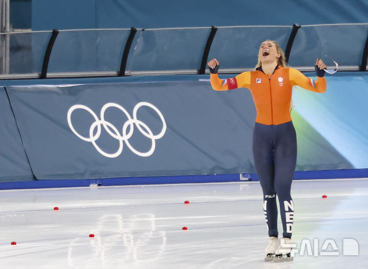 [밀라노=뉴시스] 김근수 기자 = 스피드스케이팅 여자 1000m 금메달리스트 네덜란드 유타 레이드담이 9일(현지 시간) 이탈리아 밀라노 스피드스케이팅 여자 1000m 아레나에서 열린 2026 밀라노•코르티나 담페초 동계올림픽 스피드스케이팅 여자 1000m 경기에서 금메달을 차지한 뒤 기뻐하고 있다. 2026.02.10. [email protected]
