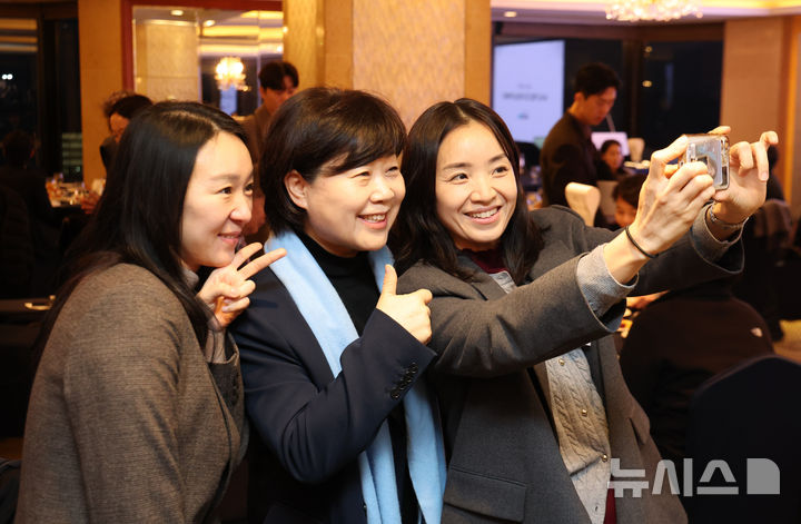 [서울=뉴시스] 황준선 기자 = 서영교 더불어민주당 의원이 10일 서울 중구 롯데호텔에서 열린 '제2기 뉴시스 여성 CEO 리더십 아카데미 입학식'에서 참석자들과 기념촬영을 하고 있다. 2026.02.10. [email protected]