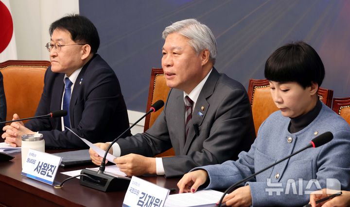 [서울=뉴시스] 조성봉 기자 = 서왕진 조국혁신당 원내대표가 10일 오전 서울 여의도 국회에서 열린 의원총회에서 발언을 하고 있다. 2026.02.10. [email protected]