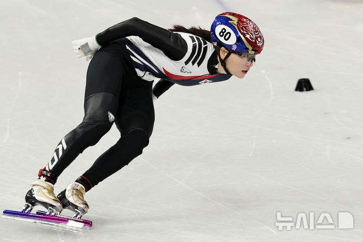 [밀라노=뉴시스] 김근수 기자 = 쇼트트랙 노도희가 10일(현지 시간) 이탈리아 밀라노 아이스스케이팅 아레나에서 열린 2026 밀라노·코르티나 담페초 동계올림픽 쇼트트랙 혼성계주 결승 B 경기에서 역주하고 있다. 대한민국은 준결승에서 미국 선수와 걸려 넘어지며 결승 진출에 실패했다. 2026.02.10. [email protected]