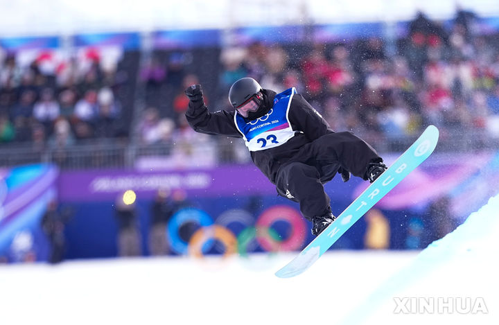 [리비뇨=신화/뉴시스] 이나윤이 11일(현지시간) 이탈리아 리비뇨 스노파크에서 열린 2026 밀라노·코르티나 담페초 동계올림픽 스노보드 여자 하프파이프 예선전에서 경기를 펼치고 있다. 이나윤은 35.00점으로 전체 22위에 머물며 결선 진출에 실패했다. 2026.02.11.