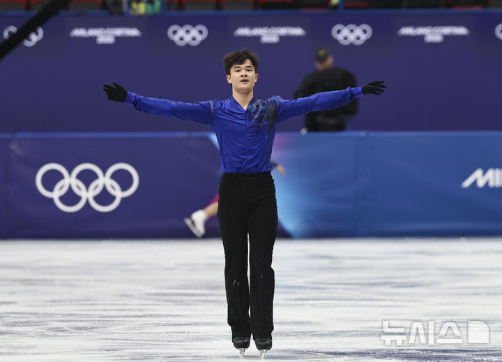 [밀라노=뉴시스] 김근수 기자 = 피겨스케이트 김현겸이 10일(현지 시간) 이탈리아 밀라노 아이스스케이팅 아레나에서 열린 2026 밀라노·코르티나 담페초 동계올림픽 남자 싱글 쇼트프로그램에서 연기를 마치고 관중들에게 인사하고 있다. 2026.02.11. [email protected]
