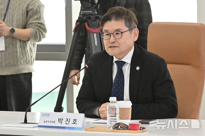 [나주=뉴시스] 이영주 기자 = 박진호 한국에너지공대 총장직무대행이 11일 오후 전남 나주시 한국에너지공대에서 열린 국민의힘 주요인사 현장방문·간담회에서 발언하고 있다. 2026.02.11. [email protected]