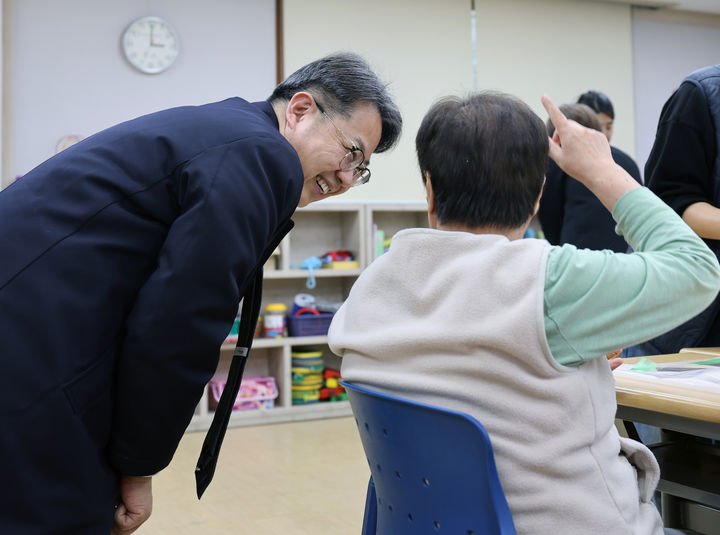 [세종=뉴시스] 강종민 기자 = 김성훈 인사혁신처 차장이 설 명절을 앞둔 11일 세종시 전동면 중증장애인 거주시설을 찾아 입소자들과 대화하고 있다. (사진=인사처 제공) 2026.02.11. [email protected] *재판매 및 DB 금지