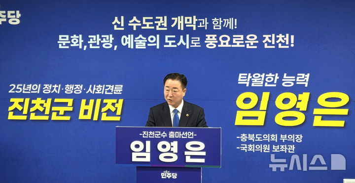 [청주=뉴시스] 임영은 충북도의회 의원이 12일 진천군청 브리핑룸에서 진천군수 선거 출마 선언 기자회견을 하고 있다. (사진=독자 제공) 2026.02.12. [email protected]