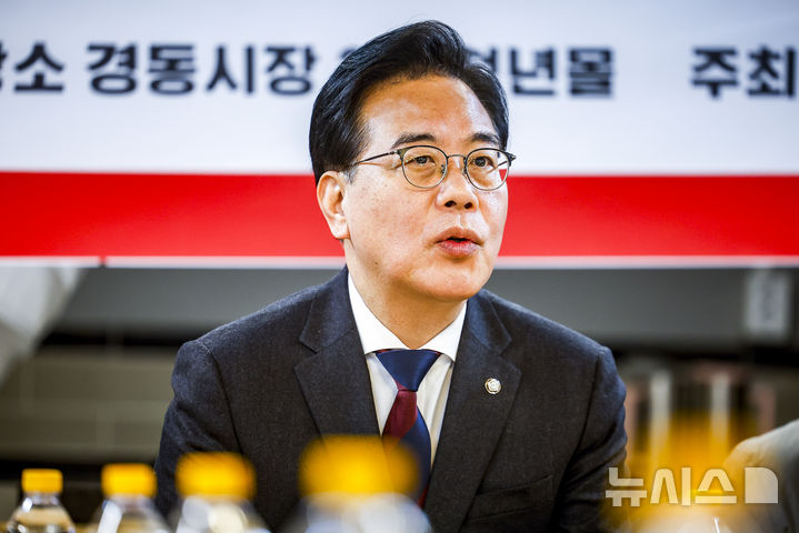 [서울=뉴시스] 정병혁 기자 = 송언석 국민의힘 원내대표가 12일 서울 동대문구 경동시장 청년몰에서 열린 국민의힘 민생경제 현장간담회에서 인사말을 하고 있다. 2026.02.12. [email protected]