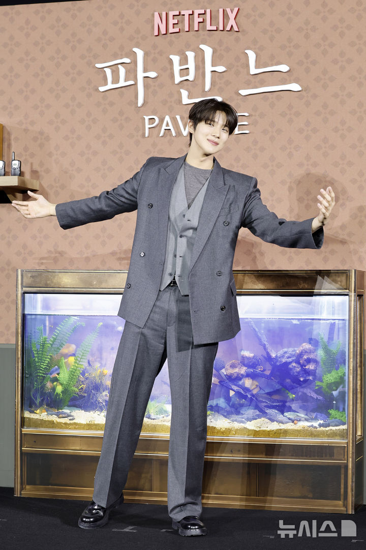 [서울=뉴시스] 김혜진 기자 = 배우 문상민이 12일 오전 서울 강남구 메가박스 코엑스에서 열린 넷플릭스 영화 '파반느'(이종필 감독) 제작보고회에서 포즈를 취하고 있다.