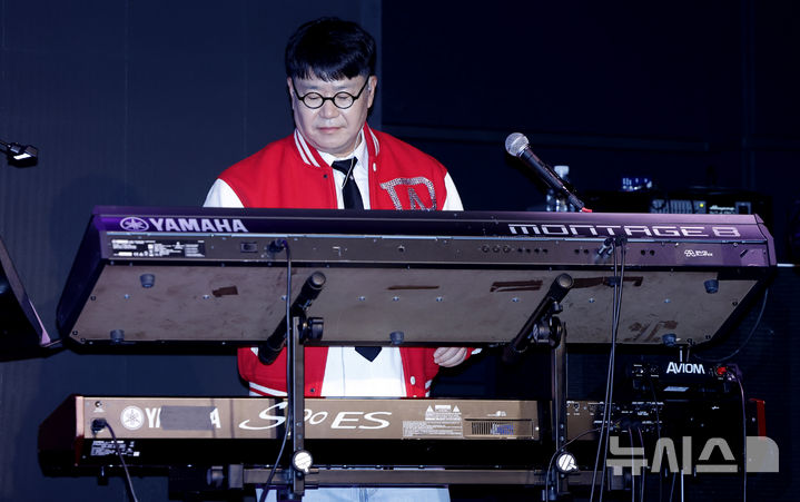 [서울=뉴시스] 김혜진 기자 = 아묻따밴드 조영수가 12일 오후 서울 종로구 SA홀에서 열린 첫 디지털 싱글 '알고 있잖아' 발매 기념 쇼케이스에서 무대를 선보이고 있다. 2026.02.12. [email protected]