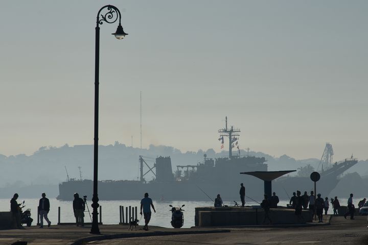 [아바나=AP/뉴시스] 12일(현지 시간) 쿠바 아바나만에 식품과 위생용품 등 구호물자를 실은 멕시코 해군 함정 ‘파팔로아판’호가 입항하고 있다. 쿠바에 대한 미국의 에너지 봉쇄 조치로 쿠바 경제가 크게 휘청이자 멕시코가 인도적 지원에 나섰지만, 석유 지원은 이뤄지지 않고 있다. 2026.02.13.