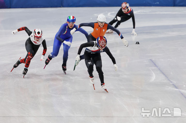 [밀라노=뉴시스] 박주성 기자 = 쇼트트랙 최민정이 12일(현지 시간) 이탈리아 밀라노 아이스스케이팅 아레나에서 열린 2026 밀라노·코르티나 담페초 동계올림픽 쇼트트랙 여자 500m 준준결승 경기에서 결승선으로 들어오고 있다. 2026.02.13. [email protected]