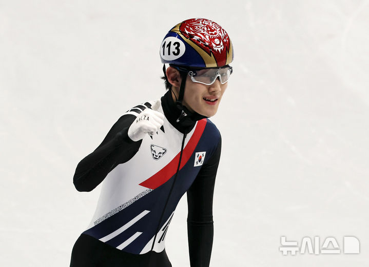 [밀라노=뉴시스] 김근수 기자 = 대한민국 쇼트트랙 임종언이 12일(현지 시간) 이탈리아 밀라노 아이스스케이팅 아레나에서 열린 2026 밀라노·코르티나 담페초 동계올림픽 쇼트트랙 남자 1000m 준결승 경기에서 역주한 뒤 엄지를 치켜 세우고 있다. 2026.02.13. [email protected]