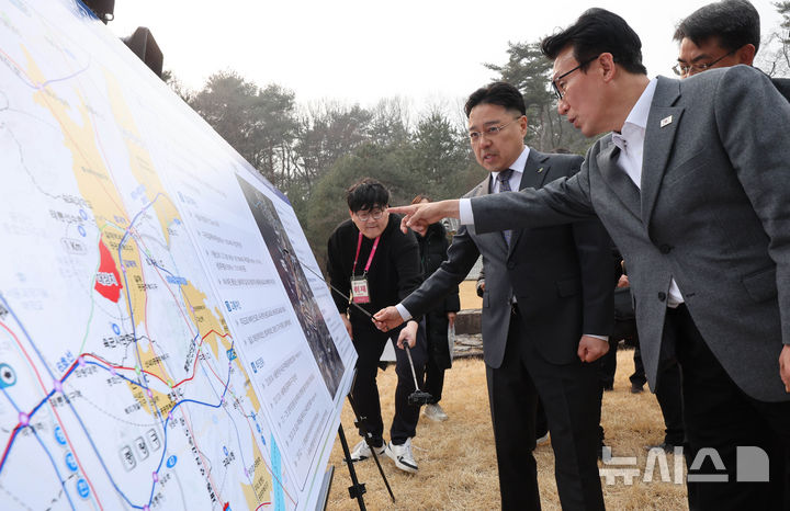 [서울=뉴시스] 배훈식 기자 = 1.29 도심주택공급방안 현장 점검에 나선 김민석 국무총리가 13일 오후 서울 노원구 강릉(명종, 인순왕후 능)에서 1.29 대책과 태릉 부지 현황에 대해 질문하고 있다. 2026.02.13. [email protected]