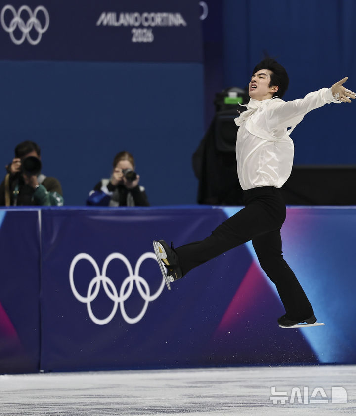 [밀라노=뉴시스] 김근수 기자 = 프리스케이팅 차준환이 13일(현지 시간) 이탈리아 밀라노 아이스 스케이팅 아레나에서 열린 2026 밀라노·코르티나 담페초 동계올림픽 피겨스케이팅 남자 싱글 프리스케이팅에서 연기를 펼치고 있다. 2026.02.14. [email protected]
