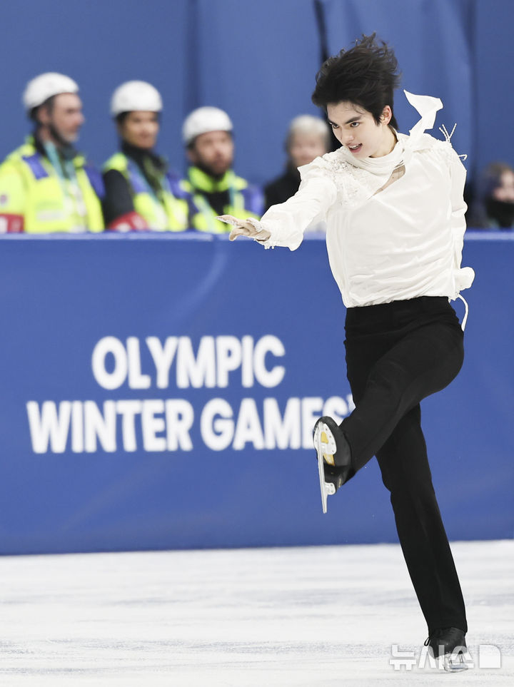 [밀라노=뉴시스] 김근수 기자 = 프리스케이팅 차준환이 13일(현지 시간) 이탈리아 밀라노 아이스 스케이팅 아레나에서 열린 2026 밀라노·코르티나 담페초 동계올림픽 피겨스케이팅 남자 싱글 프리스케이팅에서 연기를 펼치고 있다. 2026.02.14. [email protected]