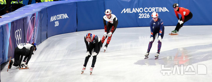 [밀라노=뉴시스] 박주성 기자 = 14일 (현지 시간) 이탈리아 밀라노 아이스 스케이팅 아레나 경기장에서 열린 2026 밀라노·코르티나담페초 동계올림픽 쇼트트랙 남자 1500m 준준준결승에서 신동민과 임종언이 출전, 임종언이 경기도중 넘어져 준경술 진출이 좌절됐다. 2026.02.15. [email protected]