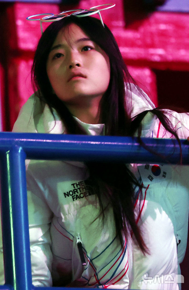 [밀라노=뉴시스] 박주성 기자 = 14일 (현지 시간) 이탈리아 밀라노 아이스 스케이팅 아레나 경기장에서 열린 2026 밀라노·코르티나담페초 동계올림픽 쇼트트랙경기에 스노우보드 금메달 리스트인 최가온이 찾아와 경기를 관람하고 있다. 2026.02.15. [email protected]
