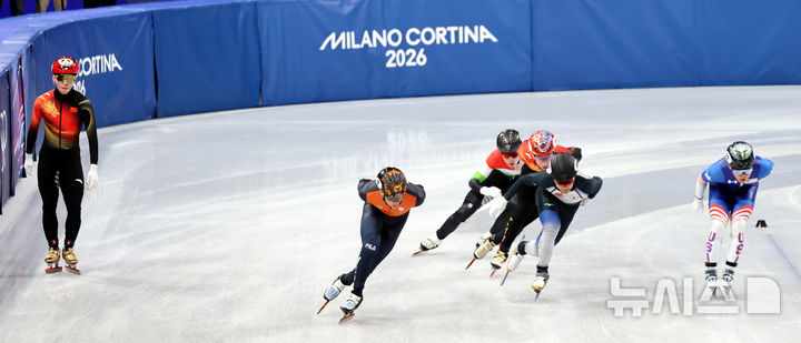 [밀라노=뉴시스] 박주성 기자 = 14일 (현지 시간) 이탈리아 밀라노 아이스 스케이팅 아레나 경기장에서 열린 2026 밀라노·코르티나담페초 동계올림픽 쇼트트랙 남자 1500m 준준결승에서 중국 린샤오쥔이 경기도중 넘어져 아쉬워하고 있다. 2026.02.15. [email protected]