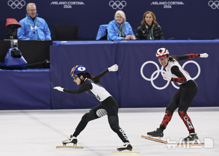 [밀라노=뉴시스] 김근수 기자 = 쇼트트랙 김길리가 14일(현지 시간) 이탈리아 밀라노 아이스 스케이팅 아레나에서 열린 2026 밀라노·코르티나 담페초 동계올림픽 쇼트트랙 스피드스케이팅 여자 3000m 계주 준결승에서 결승선을 통과하고 있다. 2026.02.15. [email protected]