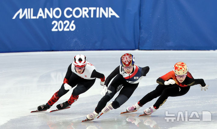 [밀라노=뉴시스] 박주성 기자 = 14일 (현지 시간) 이탈리아 밀라노 아이스 스케이팅 아레나 경기장에서 열린 2026 밀라노·코르티나담페초 동계올림픽 쇼트트랙 여자 3000m 계주 준결승에서 이소연이 역주하고 있다. 2026.02.15. [email protected]