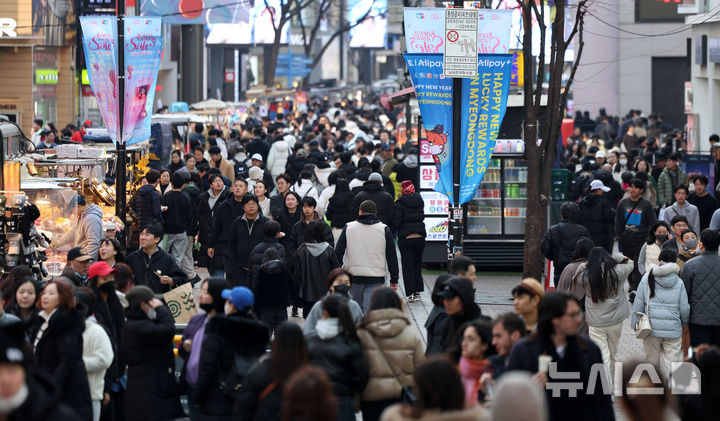 [서울=뉴시스] 김선웅 기자 = 민족대명절 설 연휴이자 역대 최장(2월 15~23일) 중국 춘절 연휴인 15일 서울 명동거리가 내외국인 관광객들로 붐비고 있다.