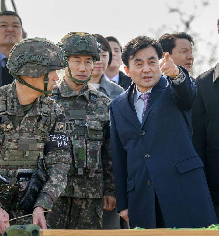 [서울=뉴시스] 안규백 국방부 장관이 15일 육군 25사단 GOP 부대를 방문해 경계 태세를 점검하고 있다. (사진=국방부 제공) 2026.02.15. [email protected] *재판매 및 DB 금지