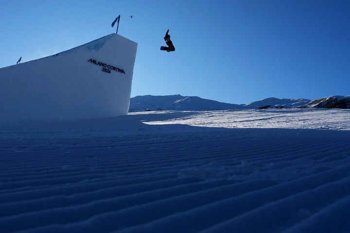 [리비뇨=AP/뉴시스] 유승은이 15일(현지 시간) 이탈리아 리비뇨 스노파크에서 열린 2026 밀라노·코르티나담페초 동계 올림픽 스노보드 여자 슬로프스타일 예선 경기를 펼치고 있다. 유승은은 76.8점으로 30명 중 3위를 차지하며 12명이 겨루는 결선에 올랐다. 2026.02.16.